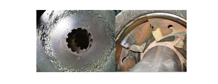 (1)造成材料破壞。汽蝕發生時,由于機械剝蝕于化學腐蝕的共同作用,使材料受到破壞。由于汽蝕現象的復雜性,所以其形成機理直到現在仍在研究探討中。一般認為水力沖擊引起的機械剝蝕,首先使材料破壞,而且是造成材料破壞的主要因素。 (2)產生噪聲和振動。汽蝕發生時汽泡的破裂和高速沖擊會引起嚴重的噪聲。另外,汽蝕過程本身是一種反復凝結、沖擊的過程,伴隨很大的脈動力。如果這些脈動力的頻率與設備的自然頻率接近,就會引起強烈的振動。如果汽蝕造成泵轉動部件材料破壞,必然影響轉子的靜平衡及動平衡,導致嚴重的機械振動。 (3)使離心泵的性能下降。泵汽蝕時,會使其性能下降。泵內氣泡較少時,泵的性能曲線并無明顯的變化,這是汽蝕的初生階段。氣泡大量產生時,流道被“堵塞”,這時汽蝕已到了發達階段。表現在泵的性能曲線上,出現明顯的變化,性能曲線發生顯著下降,出現了“斷裂”工況。但是不同的比轉速泵,其汽蝕性能曲線下降的情況是不同的。