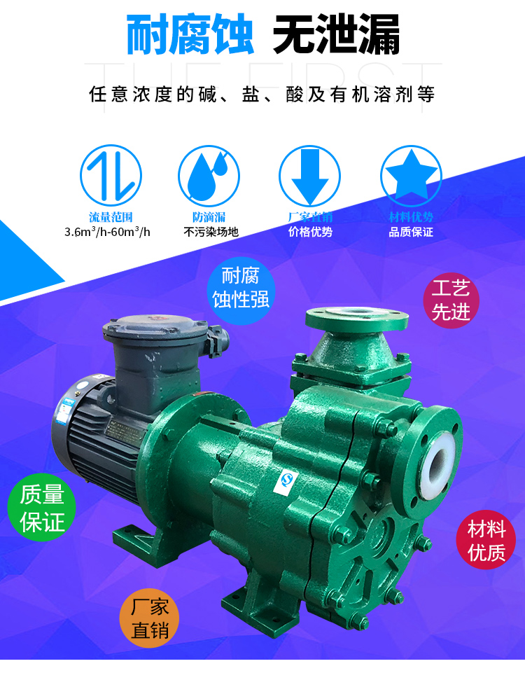ZMD襯氟自吸磁力泵是我公司新一代耐腐蝕自吸磁力泵,它不但集氟塑料磁力泵的優(yōu)點(diǎn),而且具有自吸功能、無泄漏,這是以往的所有氟塑料磁力泵不能達(dá)到的,因此,該系列泵一推出就受到了廣大用戶的歡迎。該系列泵可廣泛適用于化工、有色金屬冶煉、農(nóng)藥、制酸制堿、造紙、酸洗工藝、稀土分離、電鍍、電子、化成箔、卸酸堿等行業(yè)或工作流程,是目前磁力泵品種中結(jié)構(gòu)新穎的產(chǎn)品之一,且高效節(jié)能、安全實(shí)用。