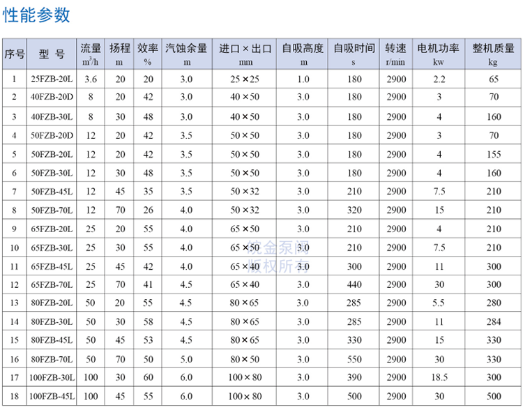 皖金泵閥氟塑料離心自吸泵主要參數: