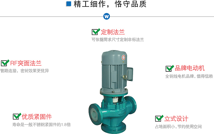 氟塑料管道泵又稱其為塑料管道泵、襯氟管道泵、四氟管道泵、耐腐蝕管道泵、襯塑管道泵、立式離心泵、立式管道泵,氟塑料管道泵是單吸單級(jí)離心泵的一種,因其進(jìn)出口在同一直線上,且進(jìn)出口口徑相同,仿似一段管道,可安裝在管道的任何位置故取名為管道泵(又名增壓泵)。氟塑料離心泵另有:IHF-D短支架型、IHF-L長(zhǎng)支架型、FSB-D短支架型、FSB-L氟塑料離心泵。